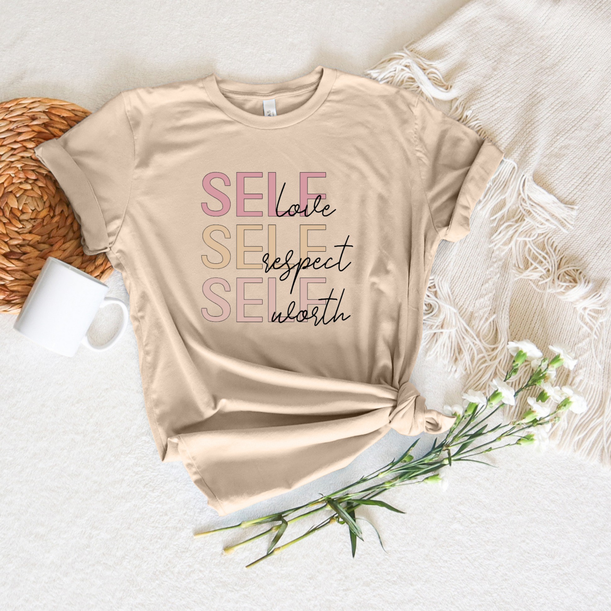 Let your love for yourself shine with this stylish Self Love T-Shirt. Crafted with a neutral color scheme, it's sure to add a bit of sophistication and class to any wardrobe. The perfect blend of comfort and style, make a statement with this go-to piece!